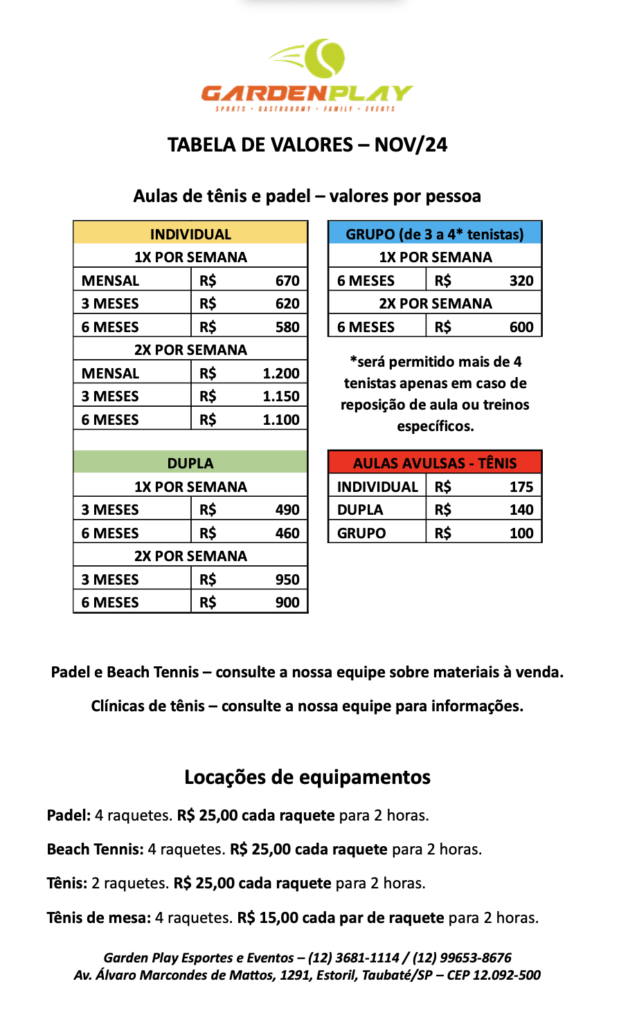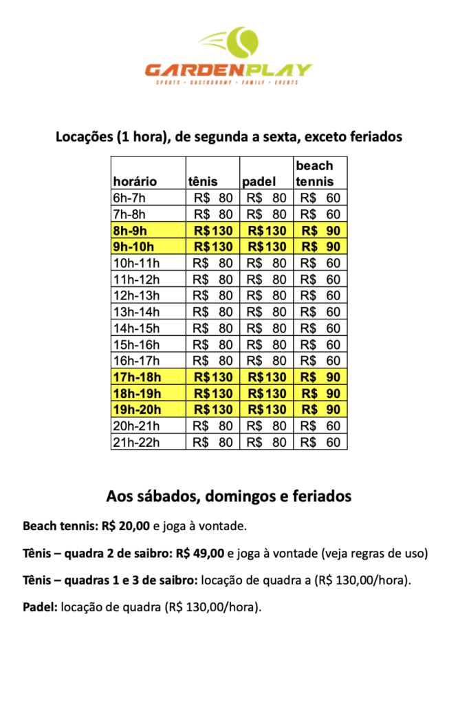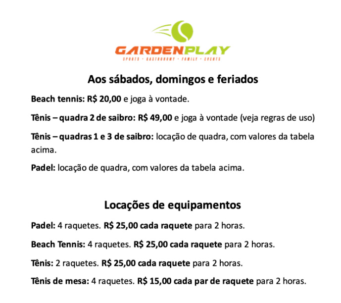 Aulas, day use e locação de quadra